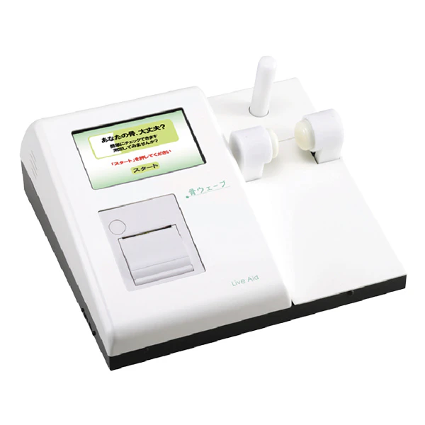 手首(トウ骨)に超音波を伝播させ、透過した波の形から“骨の強さ”を算出します。